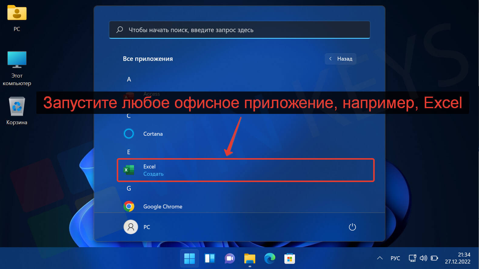 Запустите Word/Excel через «Пуск» → «Все приложения».