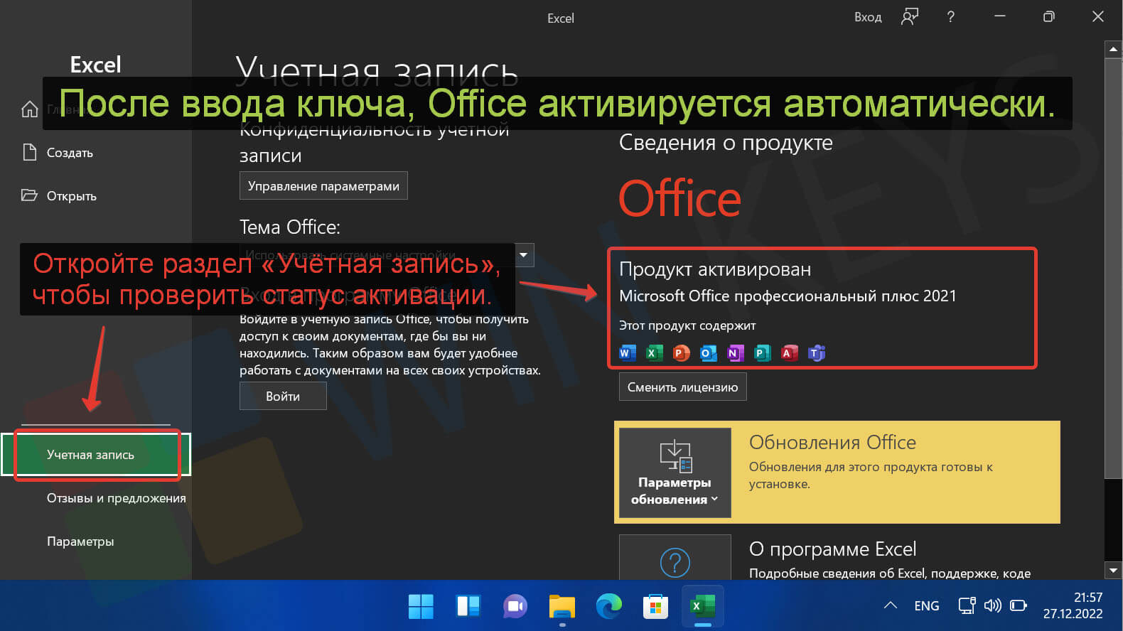 Поздравляем, ваш Office активирован.