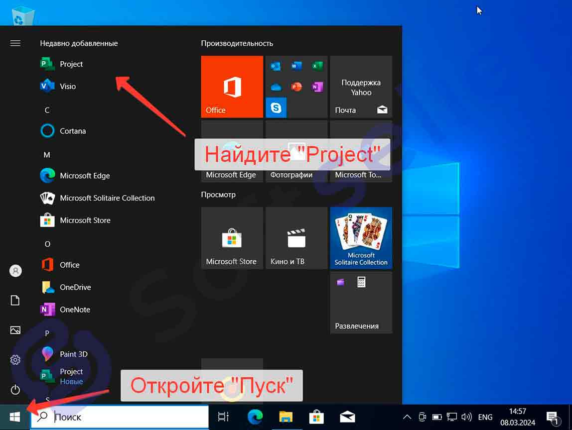 По завершению установки откройте Пуск → Project.