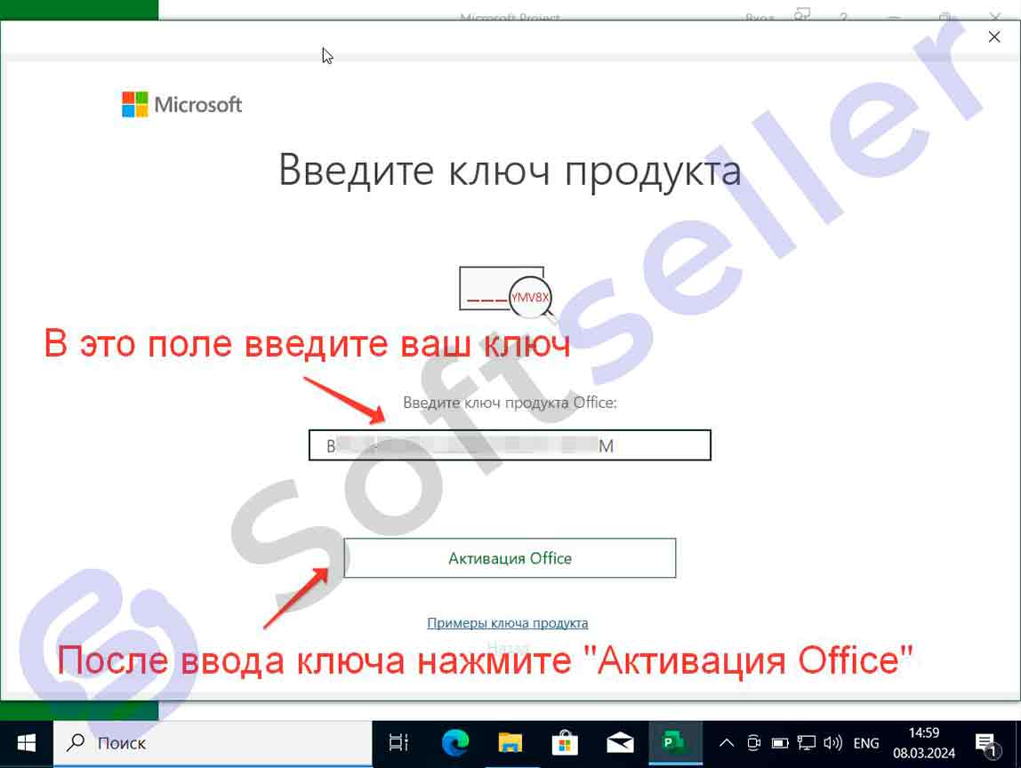 Обычный ключ вводится в Project. Ключ с привязкой — активируйте на setup.office.com.