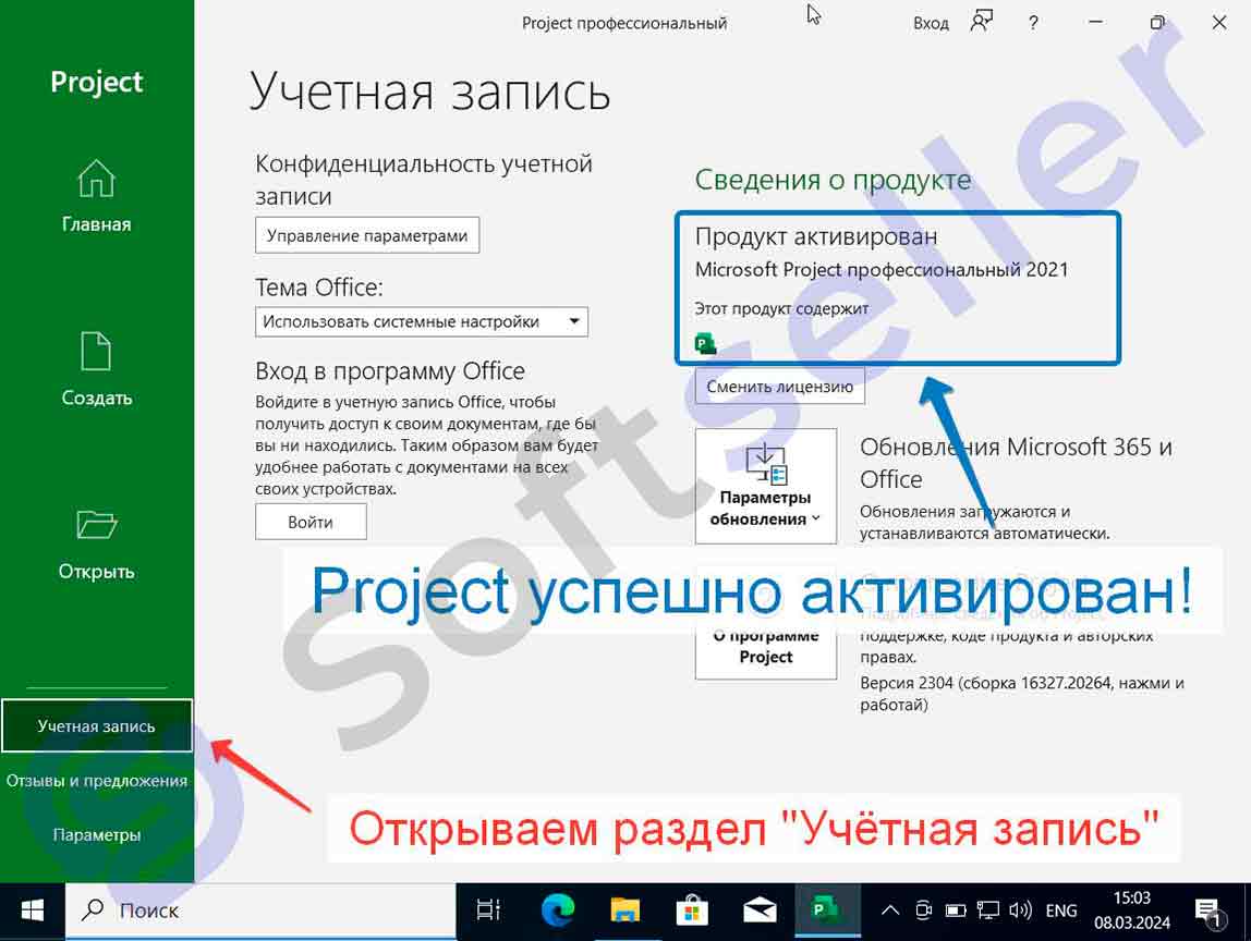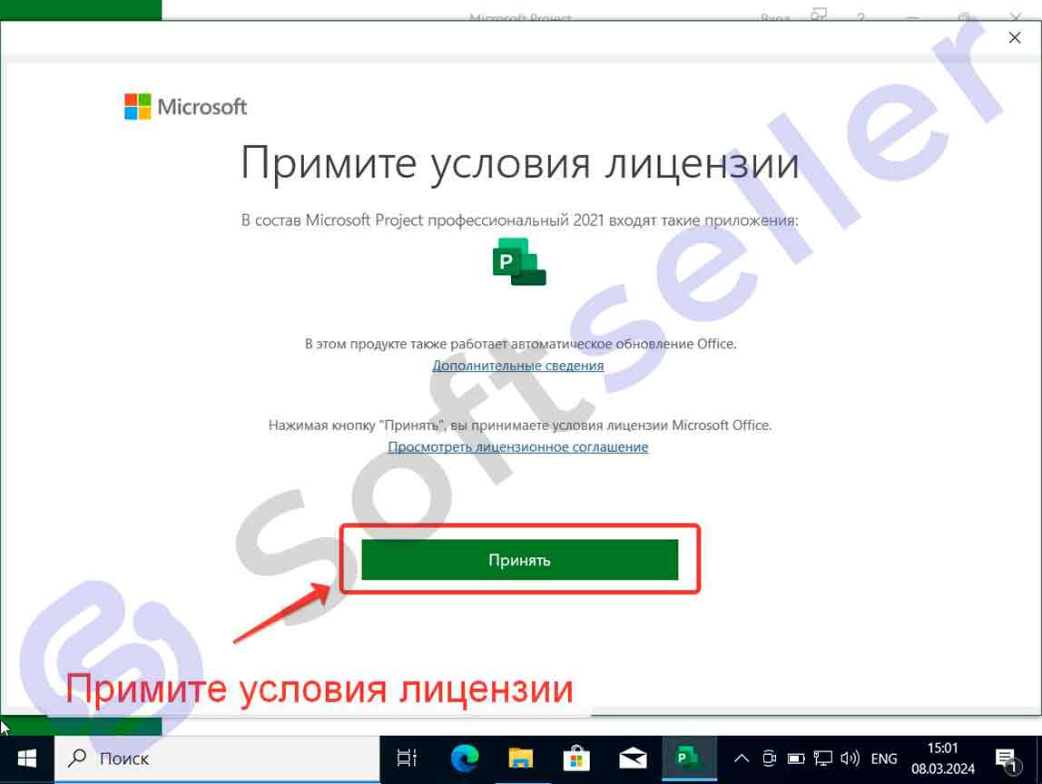 Запустите Project через «Пуск» и перейдите к окну активации.