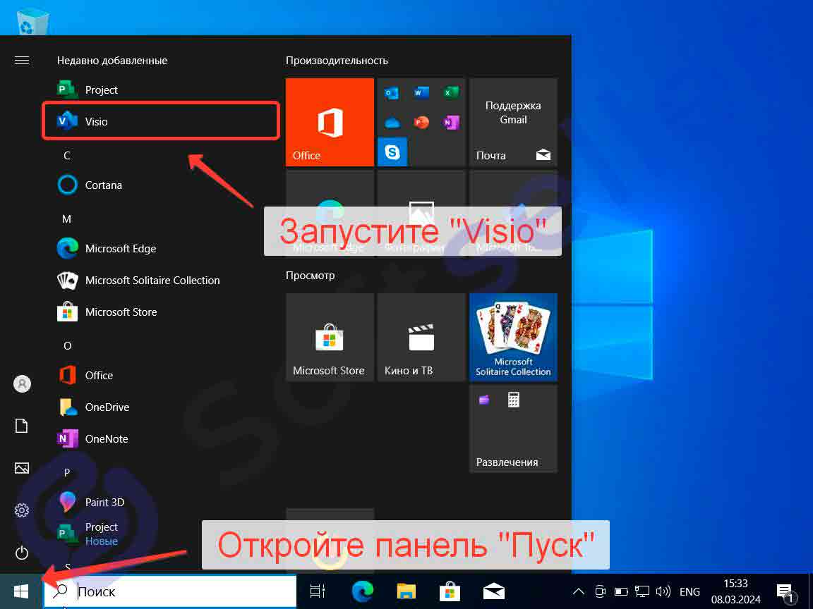Запустите Visio через «Пуск» и перейдите к окну активации.