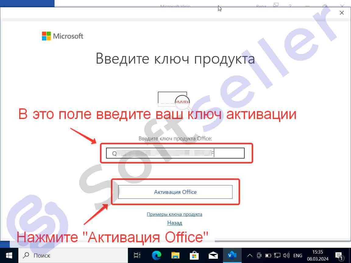 Обычный ключ вводится в Visio. Ключ с привязкой — активируйте на setup.office.com.