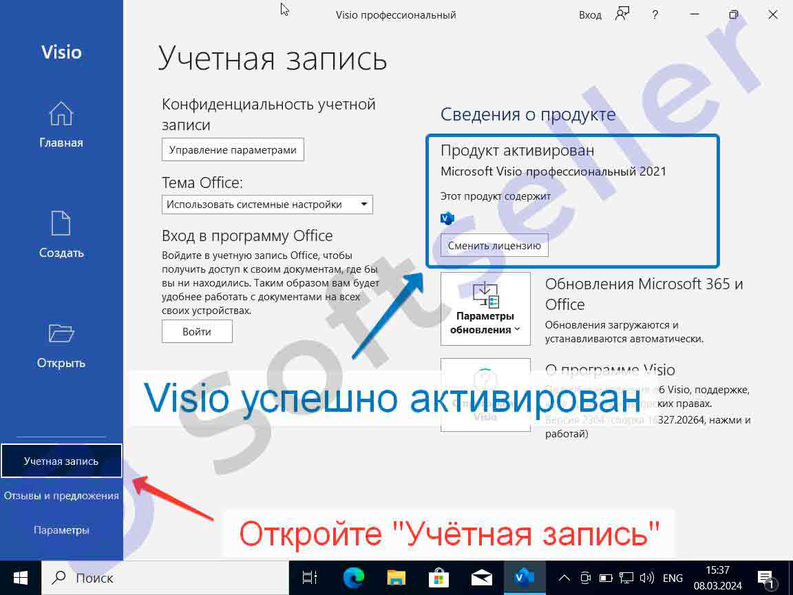 Поздравляем, ваш Visio активирован. Откройте раздел «Учётная запись» и проверьте вашу активацию.