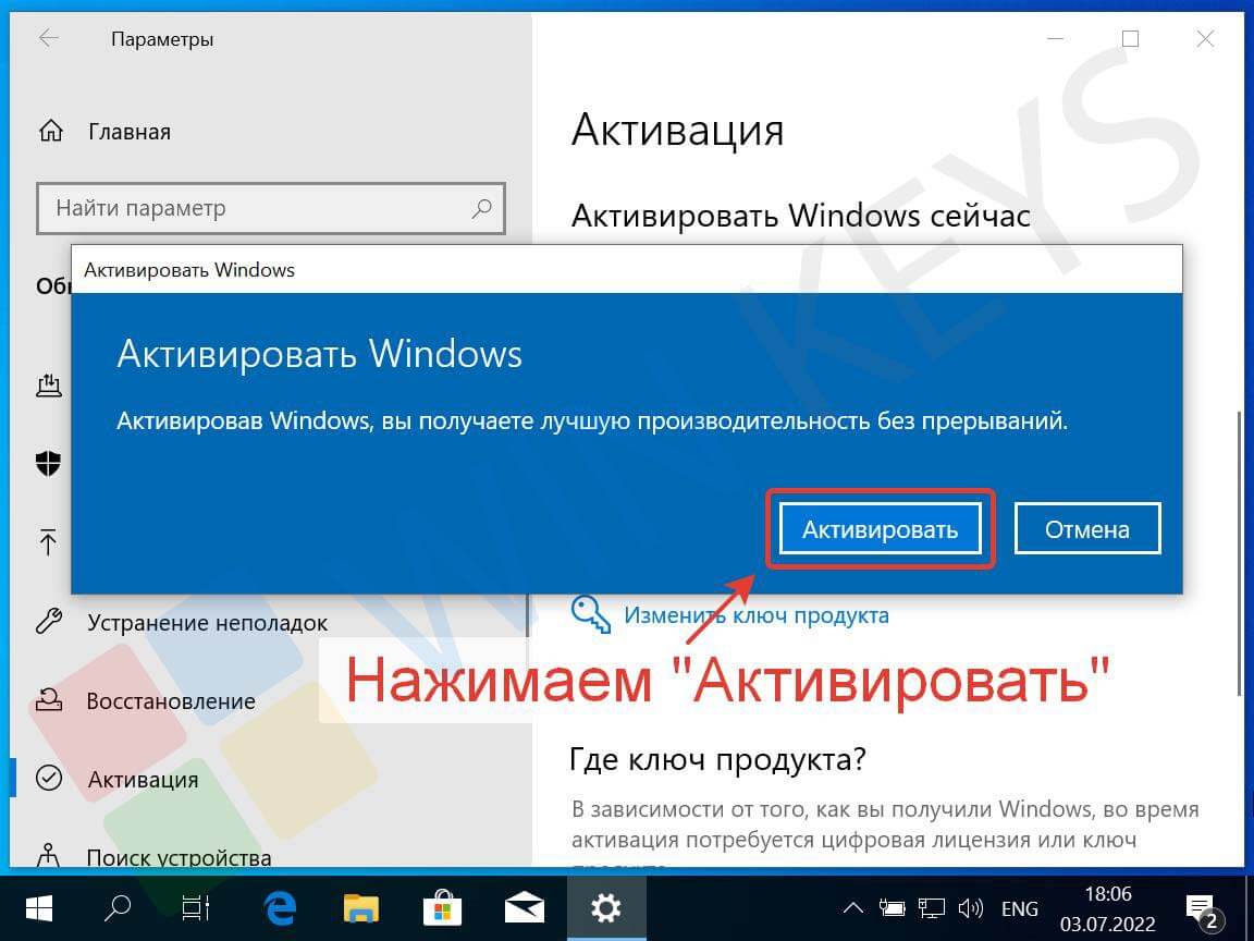 Нажмите кнопку «Активировать», чтобы завершить процесс.